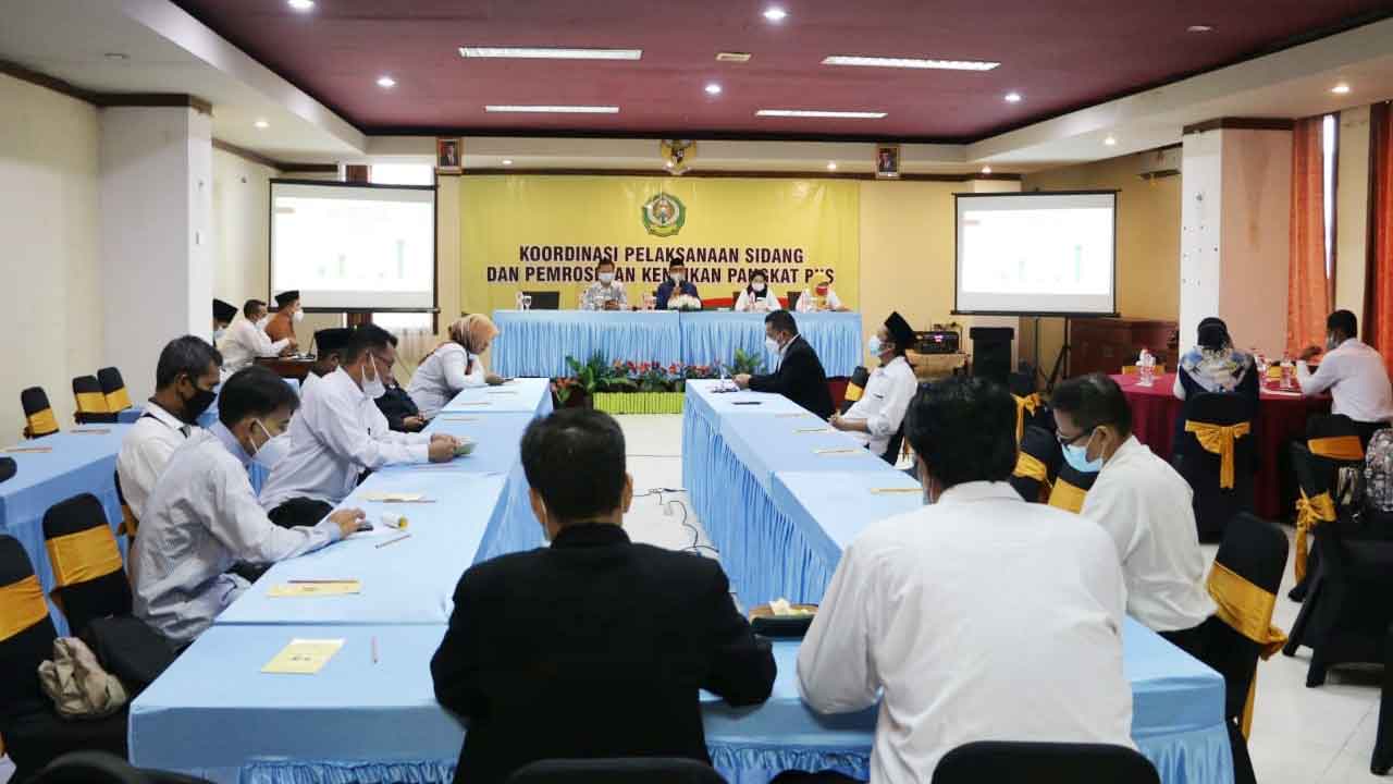 RAPAT koordinasi pelaksanaan sidang dan pemrosesan kenaikan pangkat PNS di lingkungan IAIN Syekh Nurjati Cirebon. Kegiatan ini dilangsungkan di salah satu hotel di wilayah Cirebon, Senin (7/2/2022).* (Foto: Istimewa)