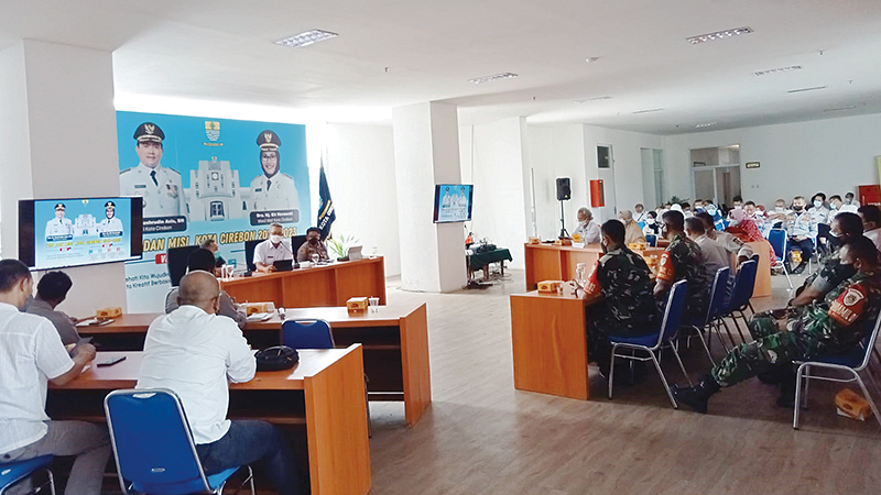 Rapat koordinasi forum komunikasi pimpinan daerah (Forkopimda) dan satuan tugas (satgas) Covid-19 tingkat kecamatan menyikapi Kota Cirebon yang berada pada PPKM Level 3, Rabu (9/2/2022).* Foto: Humas