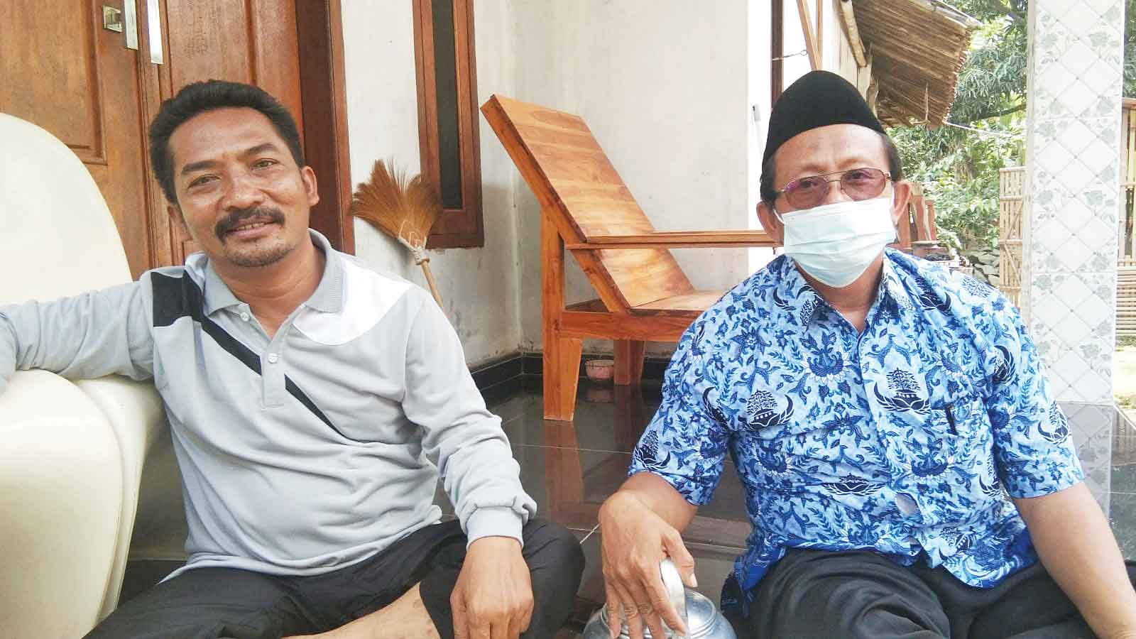 DUA kuwu bernama yang sama, Kuwu Kalibuntu Tarsono (batik Kopri) bersama Kuwu Babakan Losari Tarsono, belum lama ini. * (Foto: Baim/Suara Cirebon)