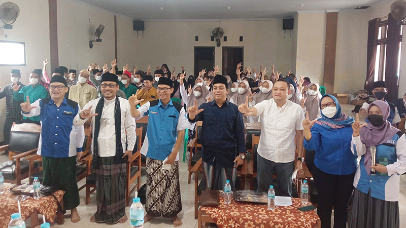 Kepala Dinas Kominfo Kabupaten Cirebon, Nanan Abdul Manan bersama Agen Penggerak Digital (APD), saat acara Kick Off Jawara Digital, di Pesantren Buntet Cirebon, Jumat (25/2/2022).* Foto: Diskominfo