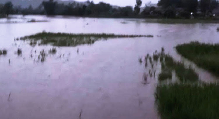 HEKTARAN AREAL persawahan terendam air akibatnya jebolnya tanggul di Desa Banjaransari, Kecamatan Cikijing.* Foto: Abr/SC