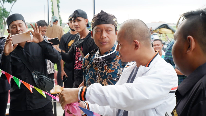 SEKRETARIS KOMISI 1 DPRD Kabupaten Cirebon Nurkholis didampingi Kuwu Gebang Kulon Andi Subandi, direktur Bumdes Jaya Suta Mohamad Rosyid saat melakukan gunting pita di grand opening cafe panorama, Minggu (13/3).* Foto: Baim/SC