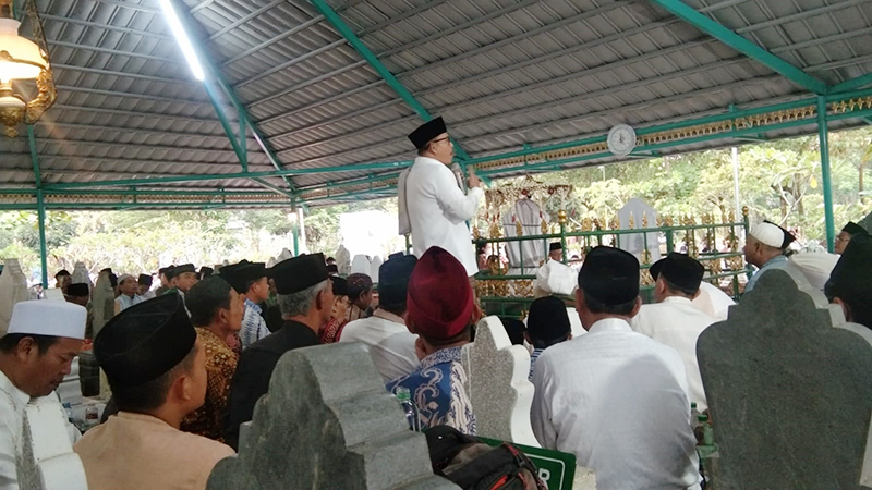 Pelakaanaan tahlil qubro di makbaroh dalam rangka Haul yang ke 91 KH Muhammad Said, Pondok Pesantren Gedongan Desa Ender Kecamatan Pangenan Kabupaten Cirebon, Sabtu (19/3).* Foto: Baim/SC