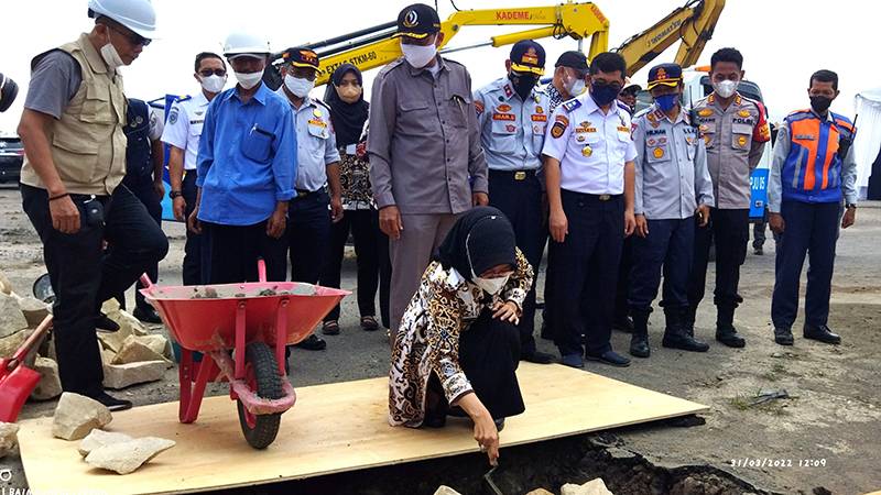 KABUPATEN CIREBON, SC- Wakil Bupati Cirebon, Hj Wahyu Tjiptaningsih, melakukan peletakan batu pertama pembangunan Terminal Ciledug, Kabupaten Cirebon, Kamis (31/3/2022).