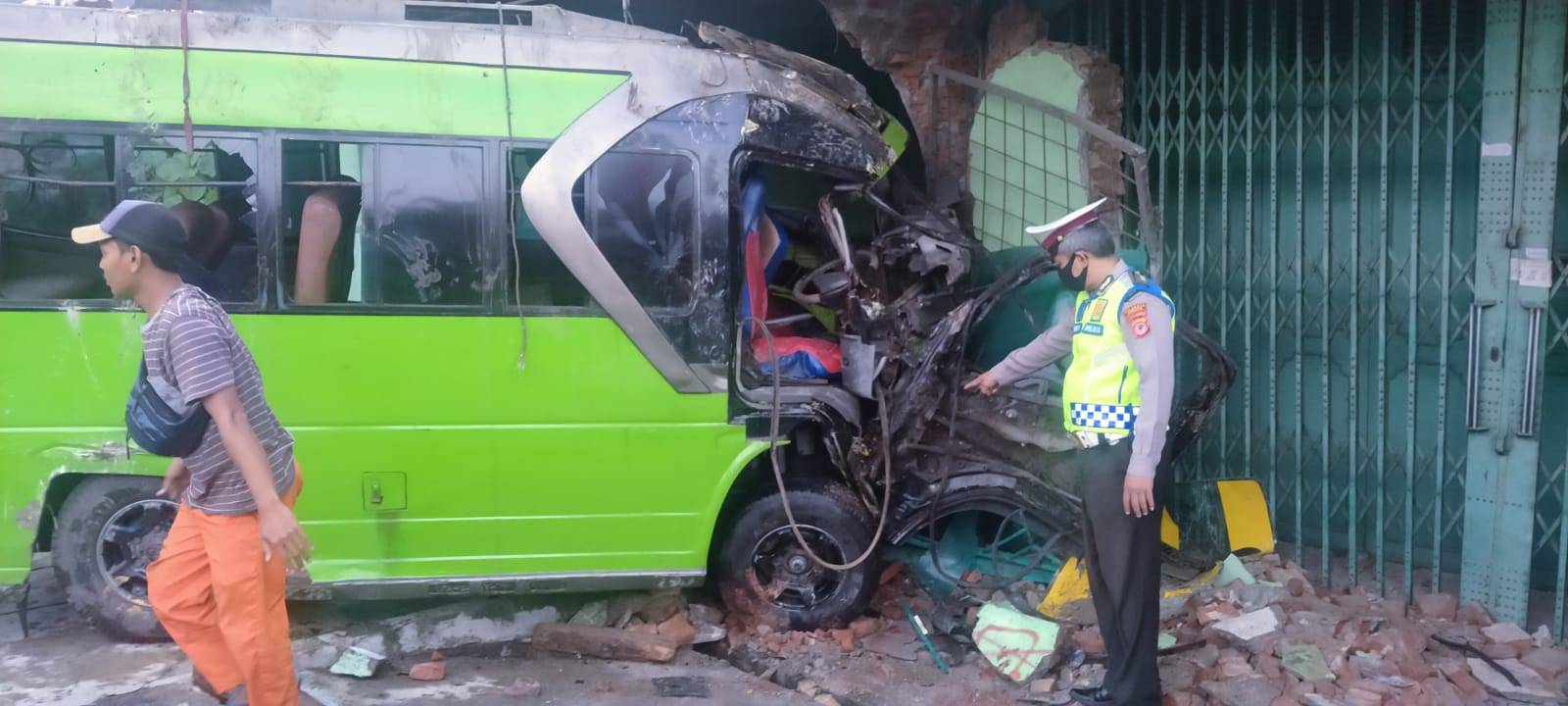 Mikrobus Oleng di Jamblang Hantam Ruko dan Sepeda Motor