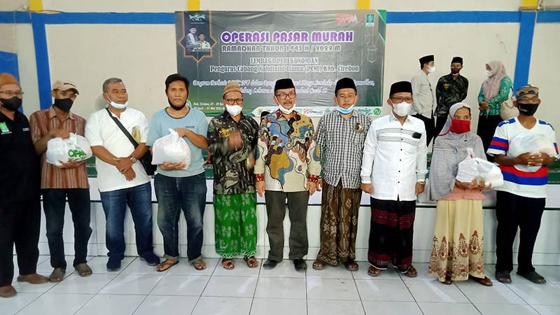 KABUPATEN CIREBON, SC- Pimpinan Cabang Nahdlatul Ulama (PCNU) Kabupaten Cirebon menargetkan menggelar operasi pasar murah (OPM) di 25 titik kecamatan di Kabupaten Cirebon. OPM pertama digelar di Desa Kaliwulu, Kecamatan Plered.