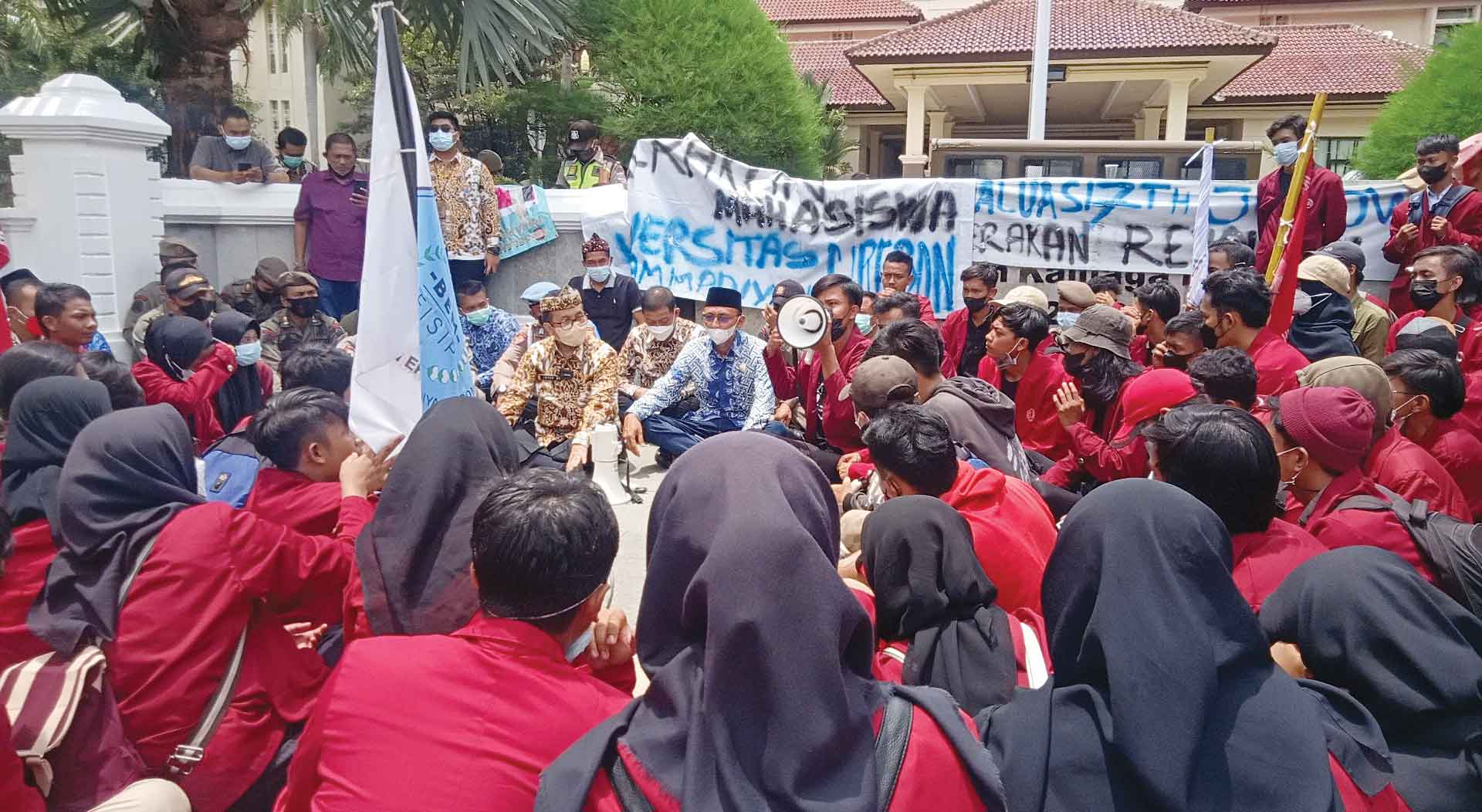 Aksi demonstrasi mahasiswa Universitas Muhammadiyah Cirebon yang dilakukan di depan kantor Bupati Cirebon saat releksi Hari Sumpah Pemuda, tahun 2021 lalu.* (Foto: Dokumen/Suara Cirebon)