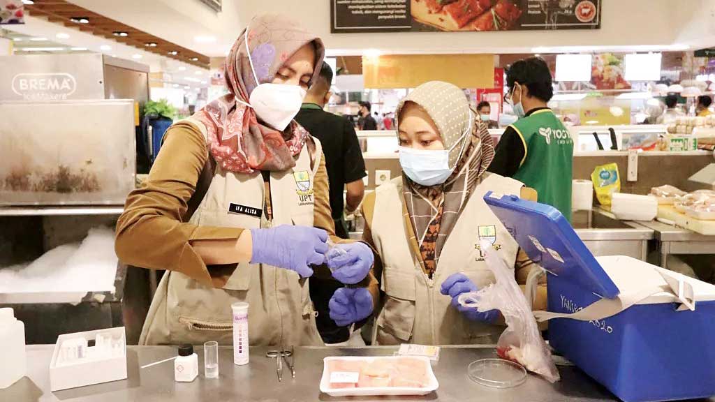 KOTA CIREBON, SC- Dinas Ketahanan Pangan Pertanian dan Perikanan (DKPPP) Kota Cirebon melakukan pemeriksaan kandungan sejumlah bahan pangan yang berada di pasaran. Sejumlah bahan pangan yang diperiksa kandungannya meliputi, daging, ikan, hingga buah-buahan.