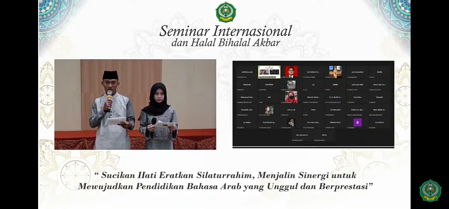 Oleh karena itu, karena ada di antara alumni kita yang sudah go internasioanl maka momen halal bihalal ini dikuatkan dengan seminar internasional. Maka dibuatlah tema “Eratkan silaturahmi menjalin sinergi untuk mewujudkan Pendidikan Bahasa yang unggul dan berpartisipasi.