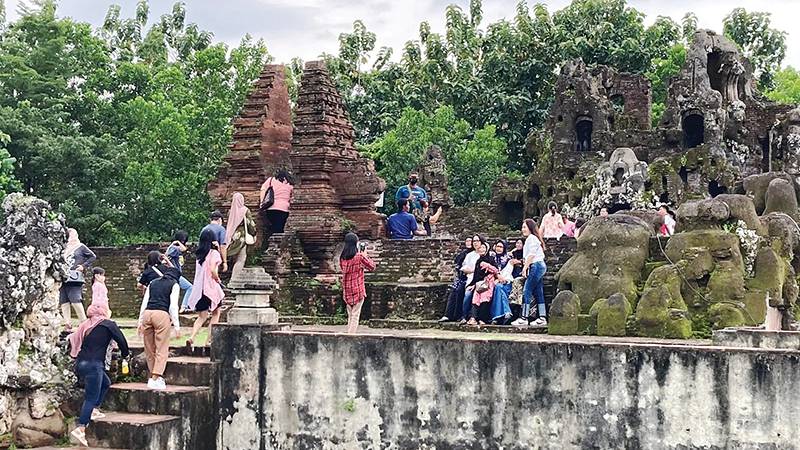 Sejumlah wisatawan lokal tampak tengah menikmati keindahan objek wisata Taman Air Goa Sunyaragi.* Foto: Humas Pemkot Cirebon