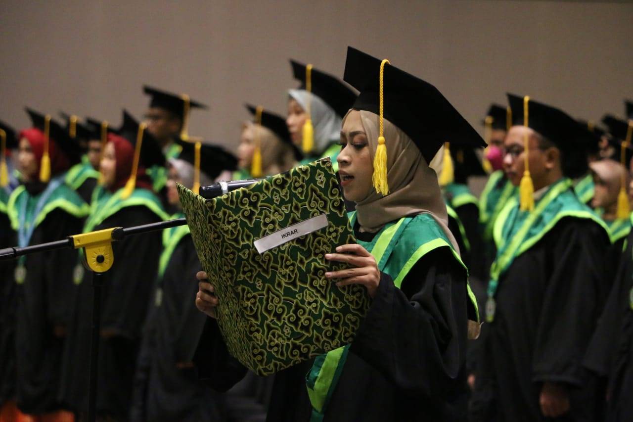 Wisudawan IAIN Syekh Nurjati Cirebon membacakan ikrar sarjana dalam prosesi wisuda XXIV di salah hotel di wilayah Cirebon, Rabu (25/5/2022).* (Foto: Istimewa)