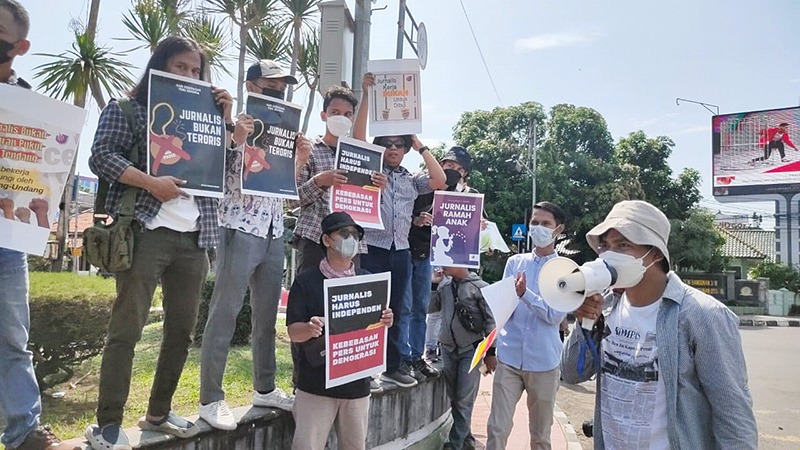 “Padahal kita dilindungi oleh Undang-Undang Pers. Kalau ada yang protes terhadap pemberitaan atau karya jurnalis silakan ada hak jawab dan hak koreksi,” kata wartawan harian Kompas itu.