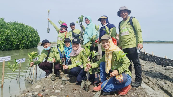 CIREBON, SC- Dosen dan mahasiswa Universitas Muhammadiyah Cirebon (UMC) melakukan penanaman 5 ribu mangrove di Sungai Betik dan Sungai Anyar, Desa Ambulu, Kecamatan Losari, Kabupaten Cirebon, Kamis (9/6/2022).