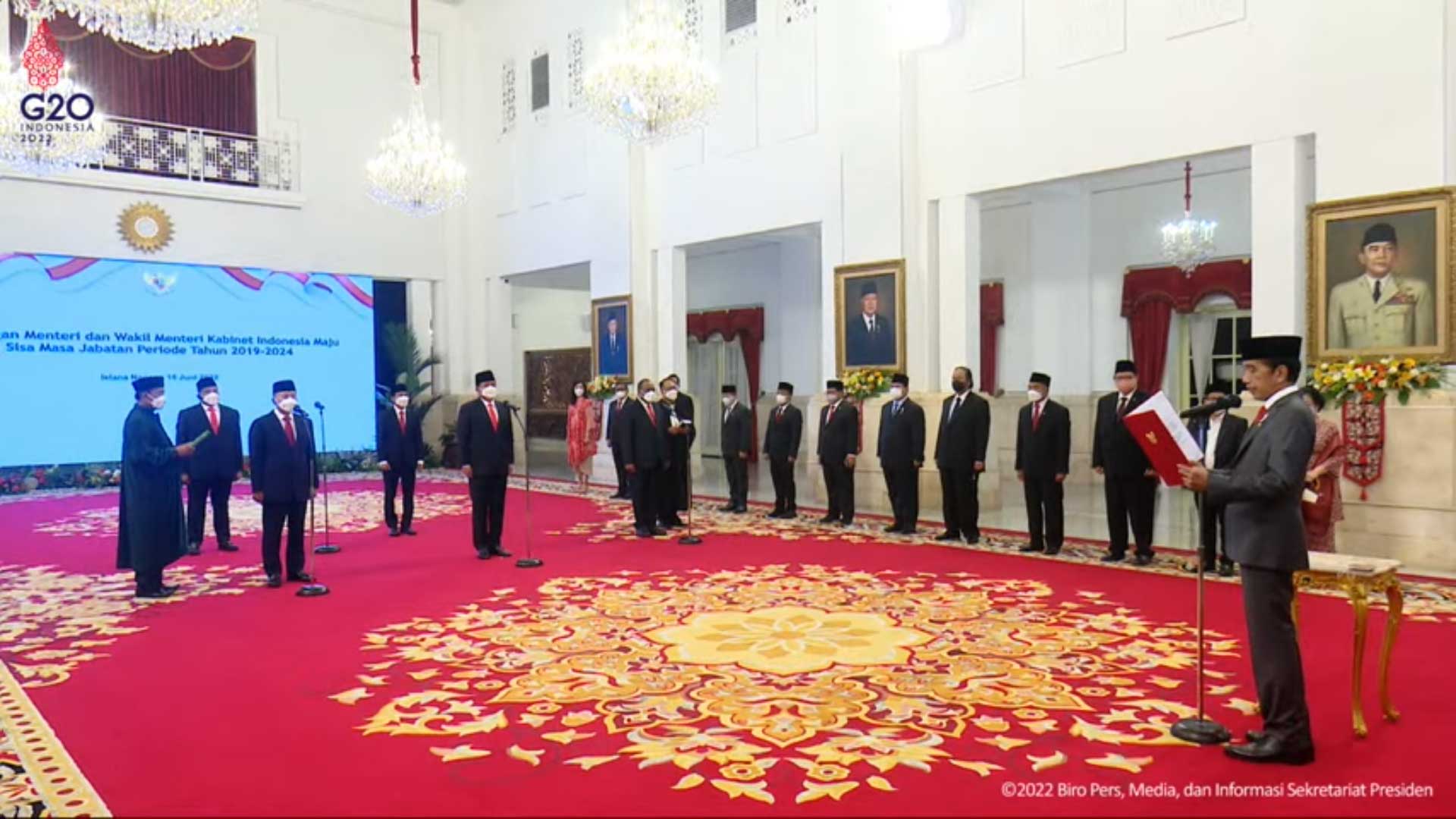 Ada 2 menteri dan 3 wakil menteri baru yang resmi dilantik Presiden Jokowi di Istana Negara, Rabu (15/6/2022).