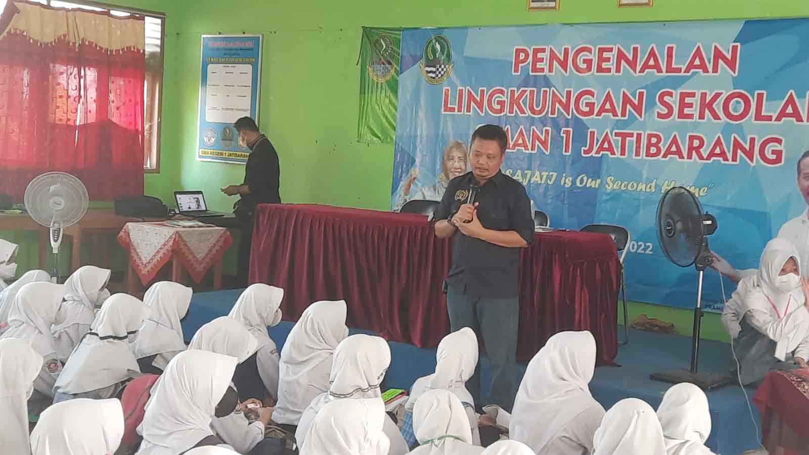 Ketua PWI Kabupaten Indramayu, Dedy S Musashi bersama Sekretaris PWI Kabupaten Indramayu, Cipyadi mengajak 300 siswa baru di SMAN 1 Jatibarang memberikan informasi baik dan positif yang dimulai dari lingkungan sekitar.