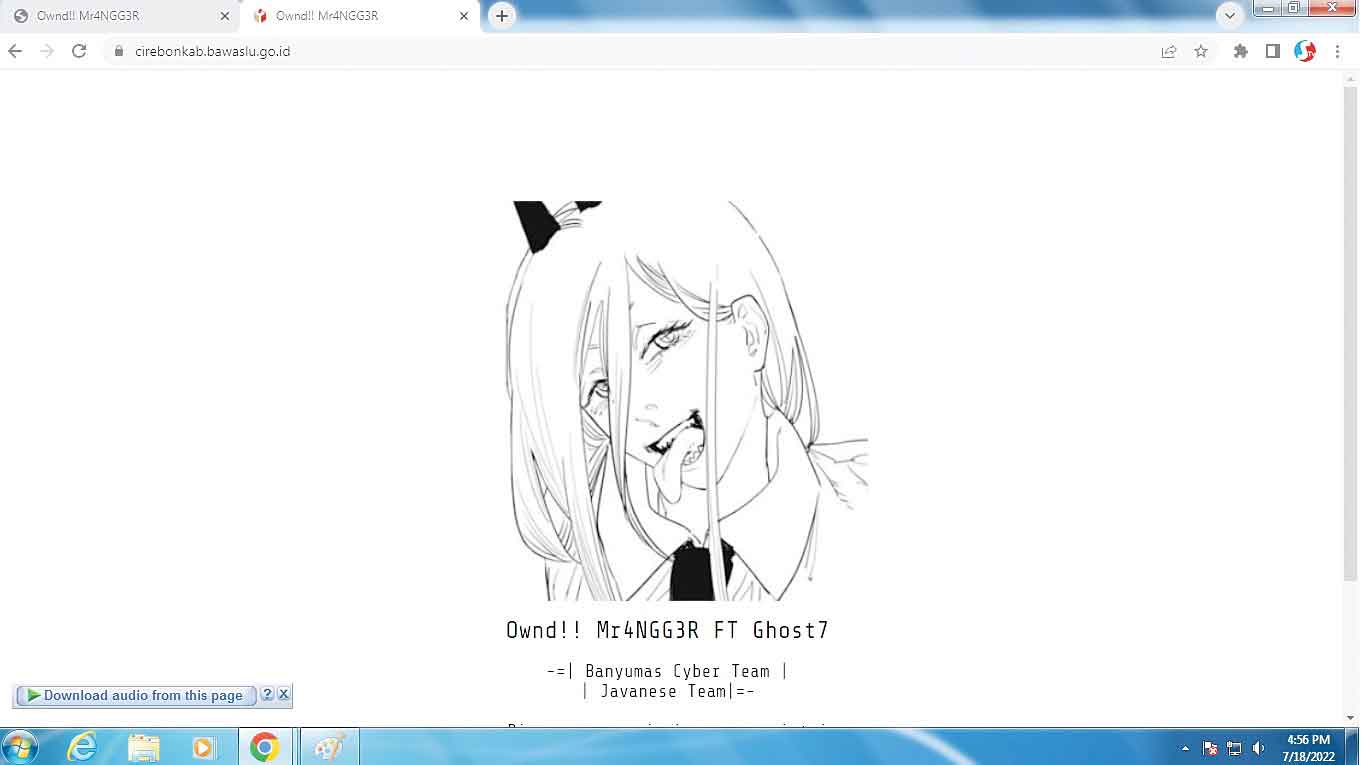 Saat Suara Cirebon mengetikkan www.cirebonkab.bawaslu.go.id atau https://cirebonkab.bawaslu.go.id/ yang muncul adalah tampilan gambar animasi gadis yang tengah menjulurkan lidah.