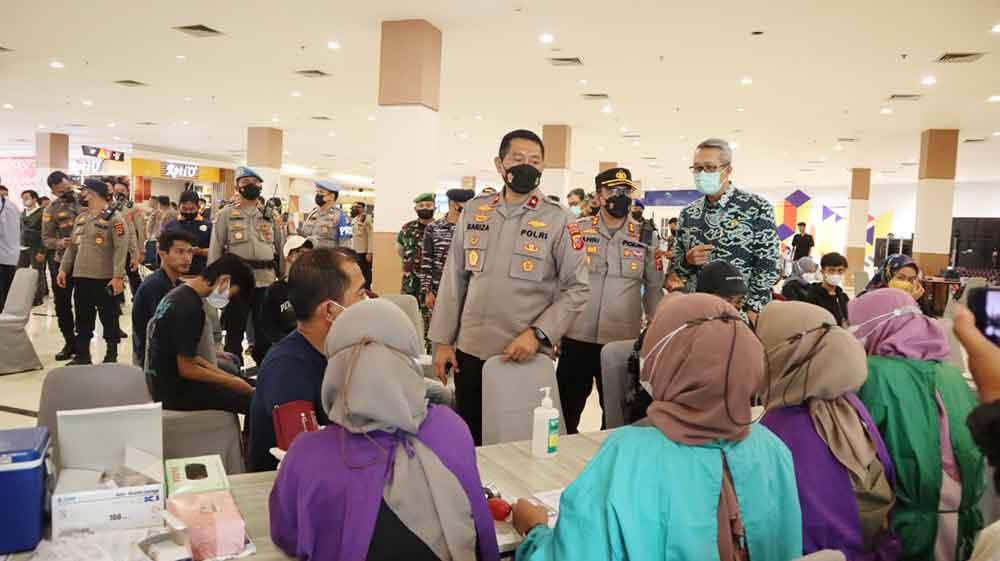KOTA CIREBON, SC- Wakapolda Jabar, Brigjen Pol. Bariza Sulfi, memantau kegiatan Gebyar Vaksinasi Booster Serentak Polres Cirebon Kota yang dilaksanakan di Grage City Mall (GCM), Selasa (26/7/2022).