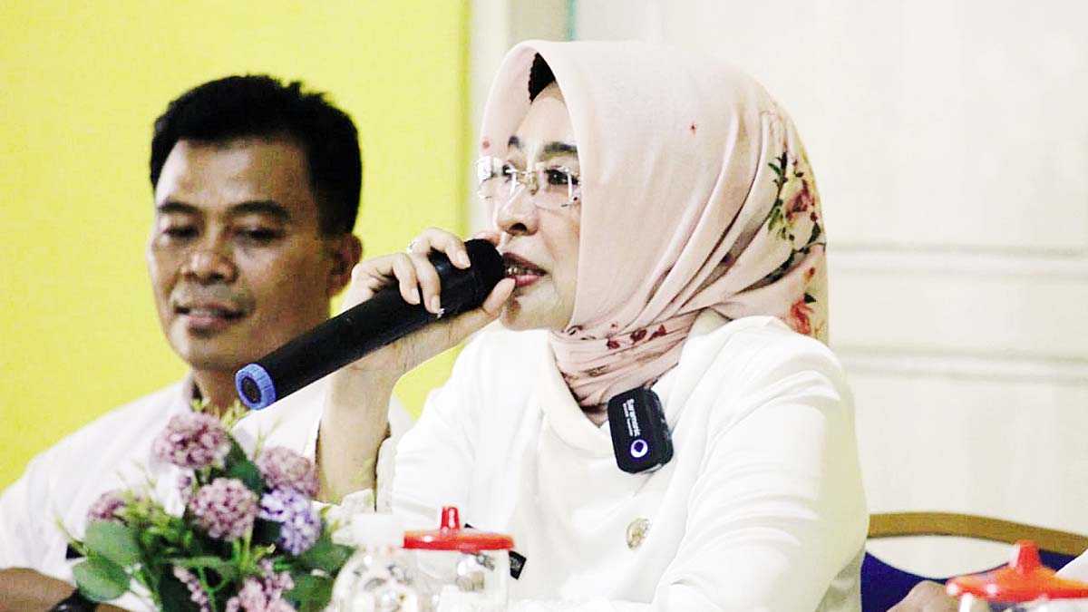 Wabup Cirebon, Hj Wahyu Tjiptaningsih mengingatkan kuwu jangan takut untuk mencoret data masyarakat yang dianggap sudah tidak laik mendapat bantuan, saat monev di Palimanan, Kamis (4/8/202).* Foto: Islah/SC