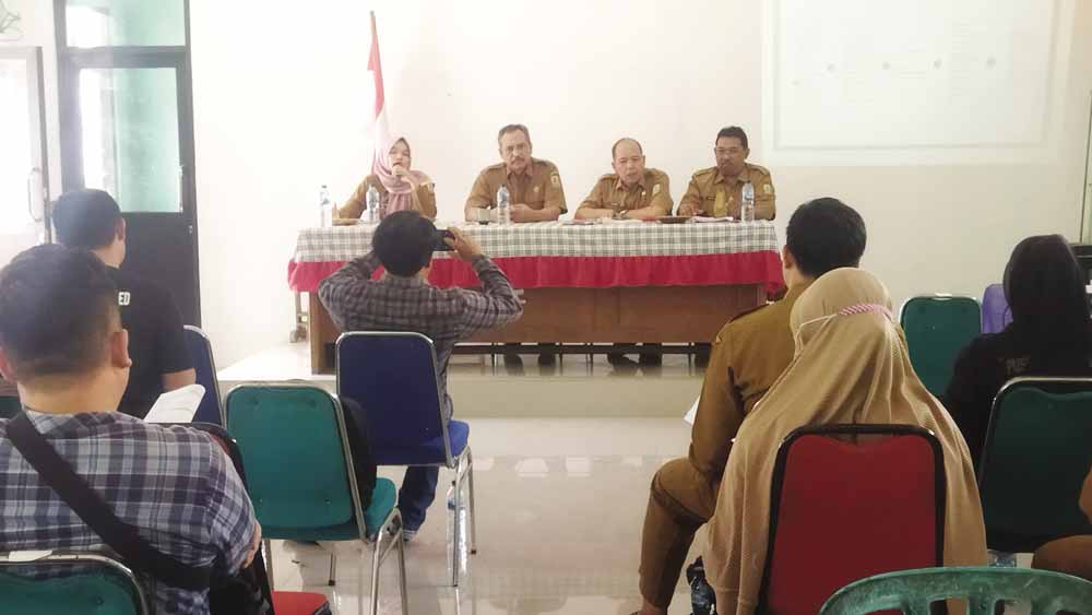 Kadinsos Kabupaten Cirebon, Iis Krisnandar saat memimpin sinkronisasi dan validasi DTKS penerima Bansos, di Kantor Kecamatan Waled, Selasa (9/8/2022).* (Foto: Baim/Suara Cirebon)
