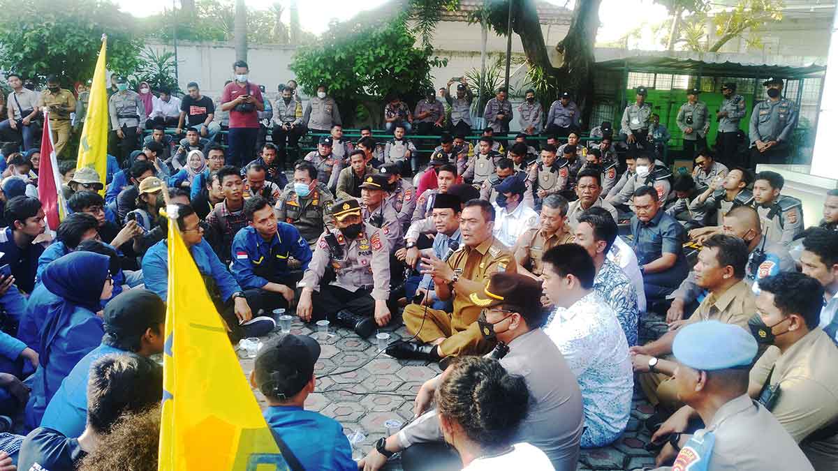 KOTA CIREBON, SC- Penolakan kenaikan harga BBM subsidi di Kota Cirebon terus dilakukan, salah satunya disuarakan organisasi kemahasiswaan Pergerakan Mahasiswa Islam Indonesia (PMII) Cabang Cirebon, di depan gedung DPRD Kota Cirebon, Selasa (6/9/2022).