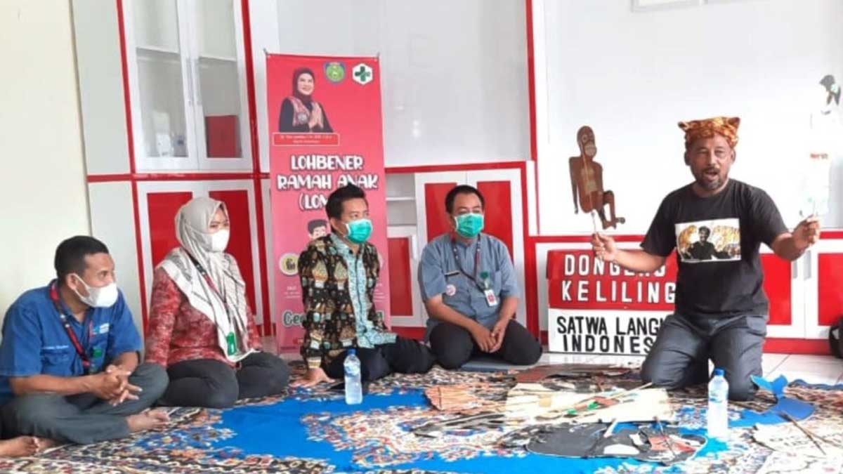 PUSKESMAS LOHBENER menggelar Jumat Berkah Berbagi bersama Samsudin Pendongeng Keliling Satwa Langka di Puskesma setempat, Kabupaten Indramayu, Jumat (23/9/2022).* Foto: Diskominfo Indramayu