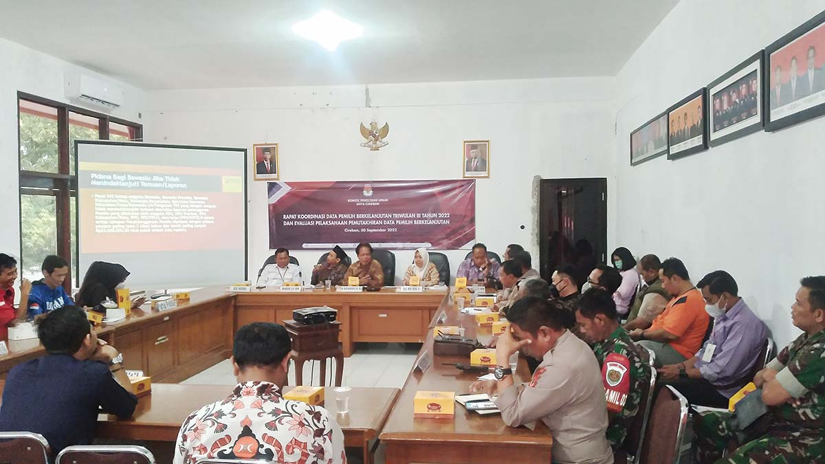 KOTA CIREBON, SC- Komisi Pemilihan Umum (KPU) Kota Cirebon menggelar Rapat Koordinasi (Rakor) Data Pemilih Berkelanjutan Triwulan III Tahun 2022 dan Evaluasi Pelaksanaan Pemutakhiran Data Pemilih Berkelanjutan (PPDPB) di aula kantor KPU setempat, Jumat (30/9/2022).