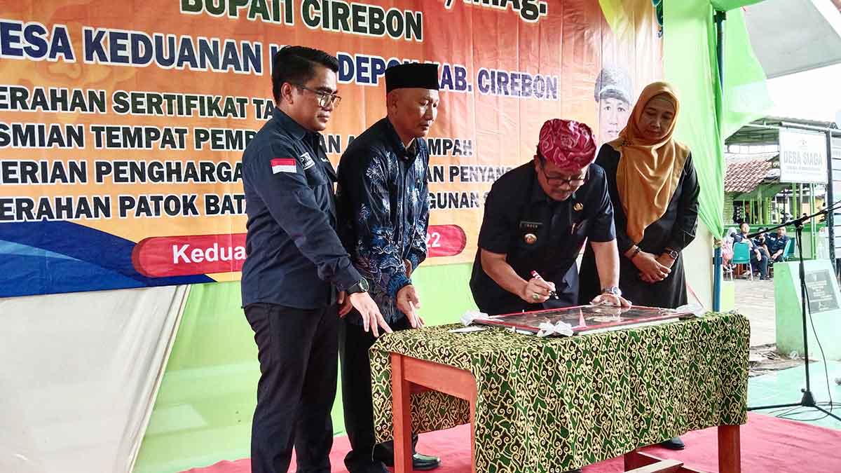“Alhamdulillah pada siang ini kami Pemdes Keduanan bersama Bupati Cirebon dapat melaksanakan beberapa kegiatan yaitu pembagian program Pendaftaran Tanah Sistematis Lengkap (PTSL), peresmian tempat Pembuangan Akhir Sampah (TPAS), pemberian penghargaan perbaikan jalan penyangga desa dan penyerahan patok batas lokasi pembangunan SMAN 1 Depok,” kata Kuwu Keduanan, Sanusi, Kamis (06/10/2022).