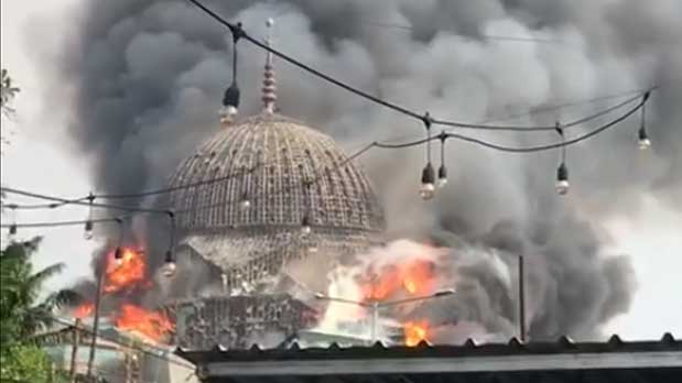 Terlihat kobaran api membakar bagian bawah kubang. Lalu dalam sekejap, kubah itu roboh bersama dengan kobaran api yang cukup besar.