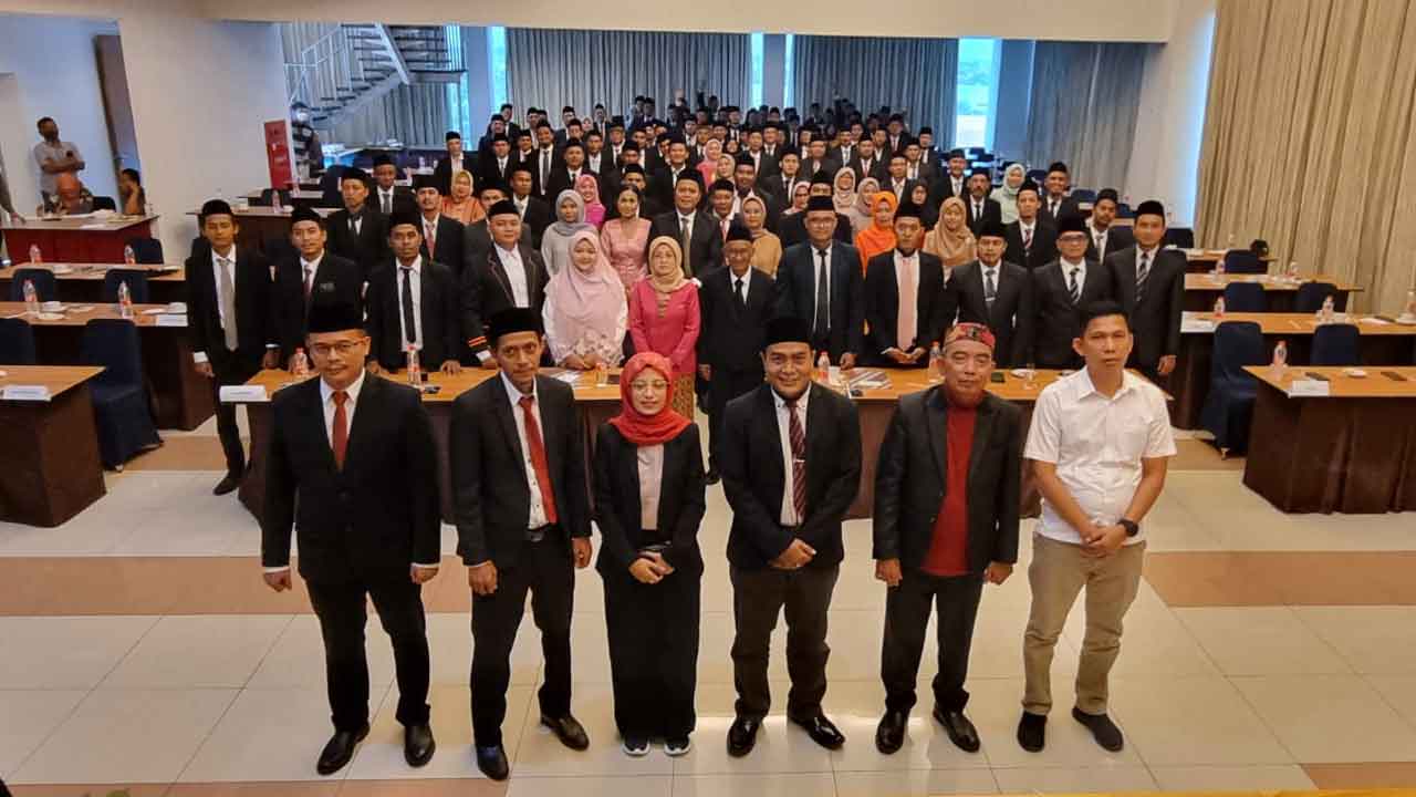 Jajaran Bawaslu Kab Cirebon (barisan paling depan) saat pelantikan Panwascam di salah satu hotel di kawasan Kedawung, Kabupaten Cirebon, Sabtu (29/10/2022).* (Foto: Humas Bawaslu Kabupaten Cirebon)