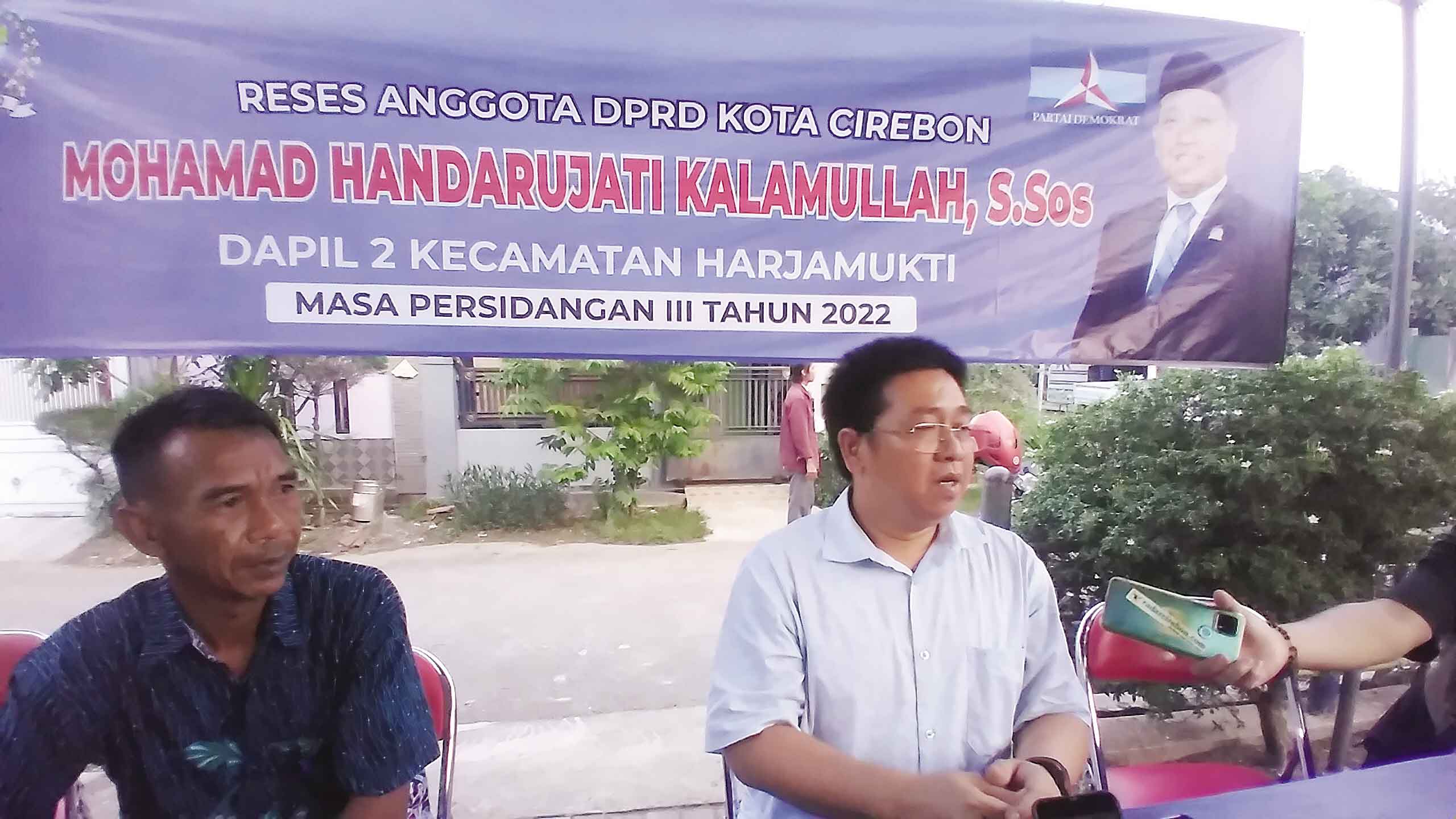 Wakil Ketua DPRD Kota Cirebon, Muhammad Handarujati Kalamullah (kanan) memberikan keterangan hasil dari reses di RW 4 Surapandan, Kelurahan Argasunya, Kecamatan Harjamukti, Rabu (16/11/2022).* Foto: Surya/Suara Cirebon