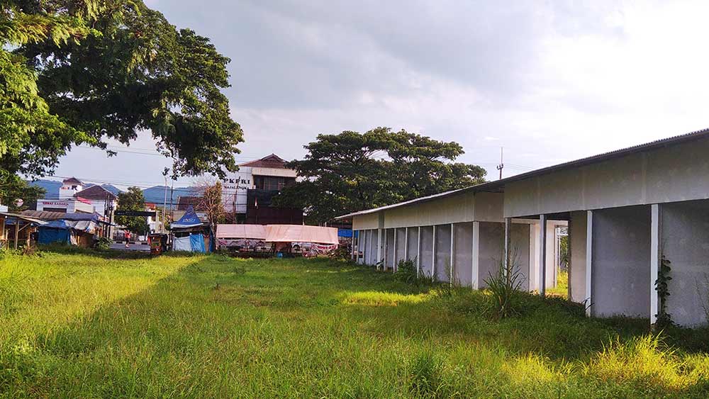 BANGUNAN PASAR darurat yang terbengkalai diduga kerap jadi tempat tindakan tak terpuji oleh pihak tidak bertanggungjawab. Gambar diambil Minggu (20/11/2022).* Foto : Abdur Rakhman/Suara Cirebon