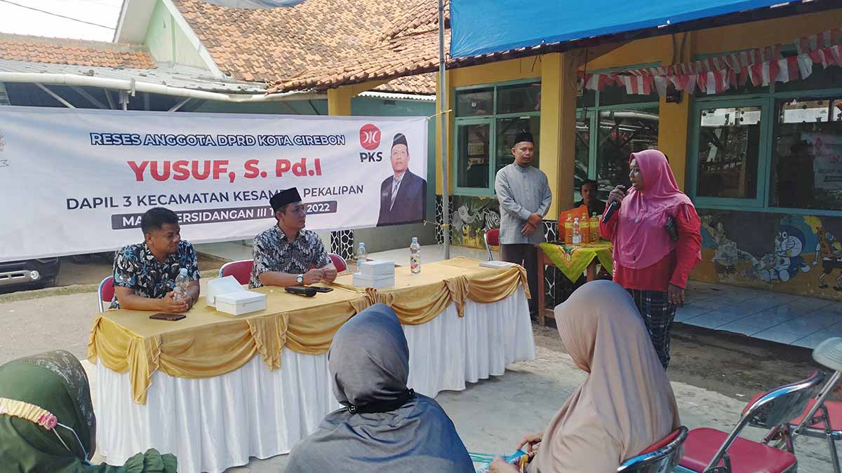 SUARA CIREBON – Anggota DPRD Kota Cirebon Fraksi Partai Keadilan Sejahtera (PKS), Yusuf dibanjiri aspirasi dari konstituennya di Kampung Karang Yudha, RW 1 Kelurahan Sunyaragi, Kecamatan Kesambi, Kota Cirebon pada Reses Masa Persidangan III DPRD Kota Cirebon 2022, Jumat (18/11/2022).