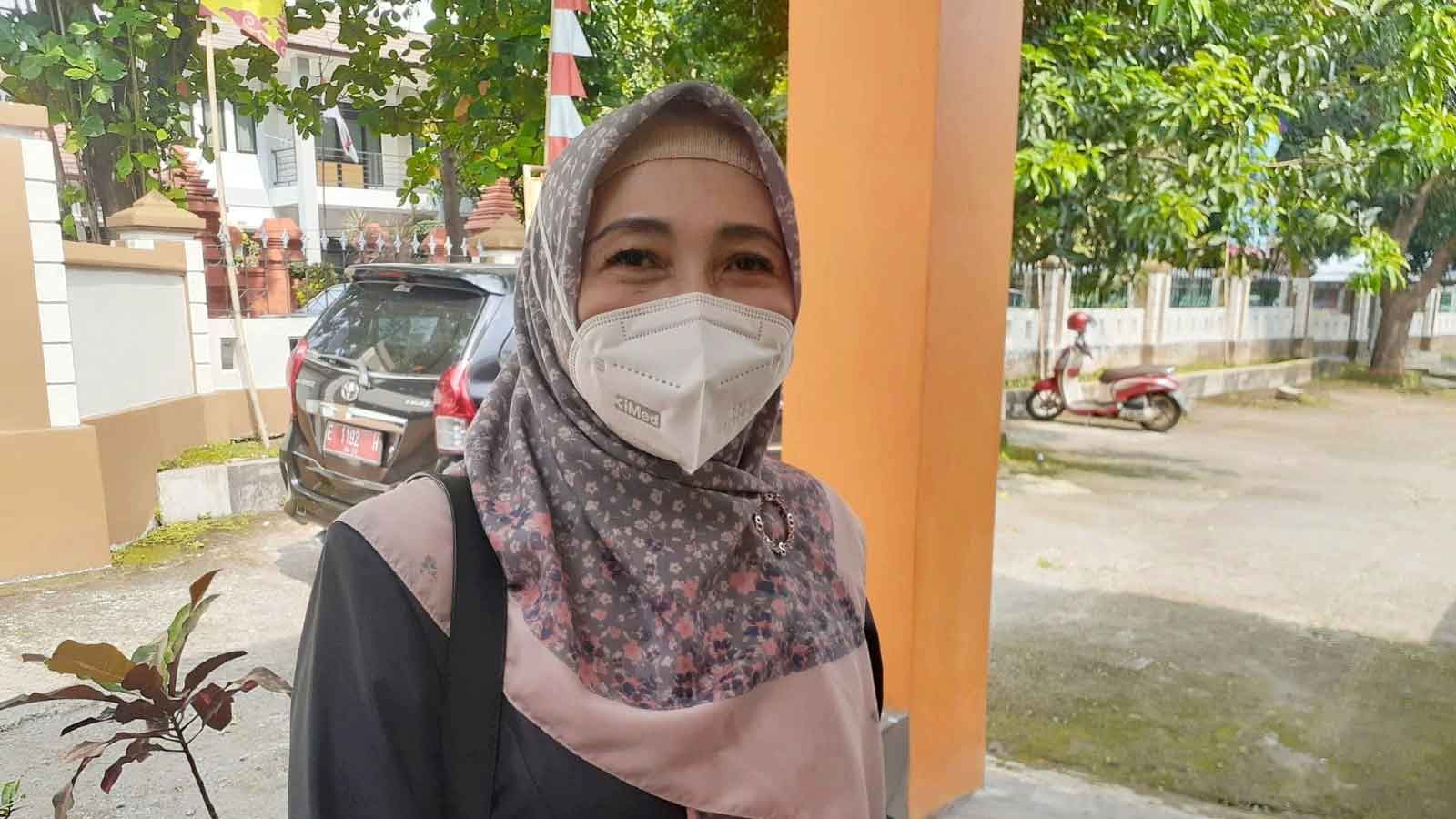 Kadinkes, Hj Neneng Hasanah saat menyampaikan kasus penemuan limbah medis di Sungai Cipager, Sumber, Senin (21/11/2022).* Foto: Islah/Suara Cirebon