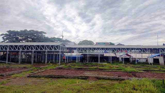 PASAR SEMENTARA ikut terbengkalai, akibat batalnya rencana revitalisasi Pasar Sindangkasih atau yang dikenal dengan Pasar Cigasong, Kabupaten Majalengka, Rabu (23/11/2022).* Foto : Abdur Rakhman