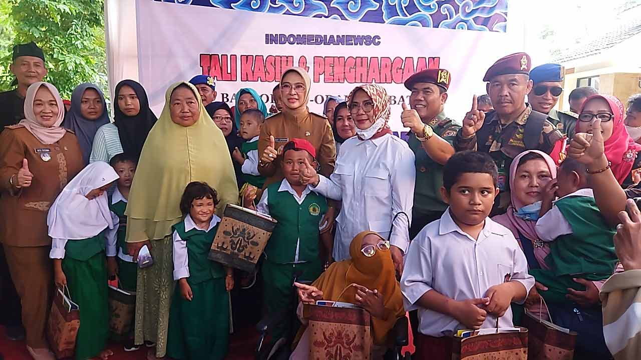 Wakil Bupati Cirebon, Wahyu Tjiptaningsih bersama anak - anak hebat dari TK-LB Kabupaten Cirebon, saat kegiatan Tali Kasih bagi Orang-orang Hebat, bertempat di kantor Cabang LBH Sunan Gunungjati, Kecamatan Lemahabang, Selasa (22/11/2022).* Foto : Baim/Suara Cirebon