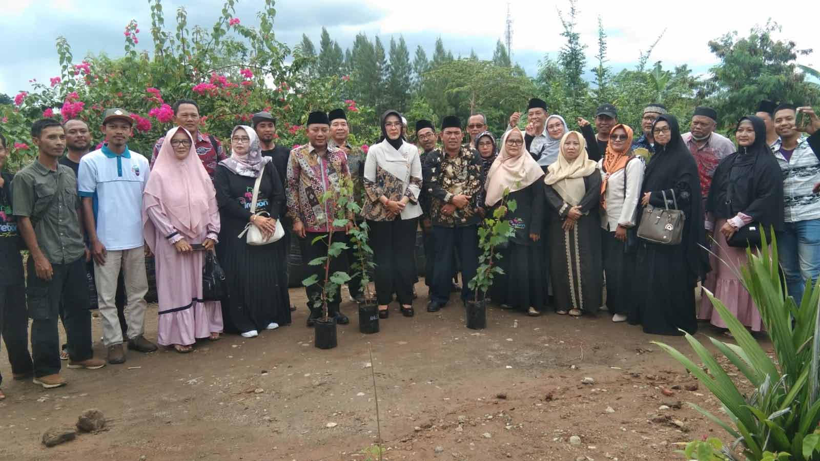 ASPAI Cirebon, bersama Wabup Cirebon, Staf Kemenaker RI, dan pengurus Pondok Pesantren Gedongan, Desa Ender Kecamatan Pangenan, Kabupaten Cirebon saat penanaman bibit tanaman anggur dari berbagai jenis di kebun milik pesantren setempat, Minggu (27/11/2022).* Foto: Baim/Suara Cirebon
