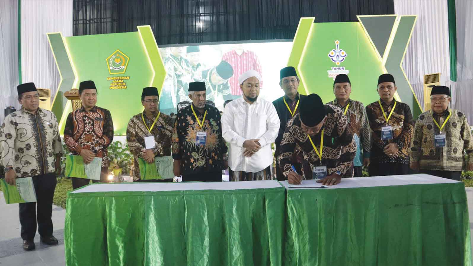 Perwakilan peserta menandatangani rekomendasi Mudzakarah Perhajian Indonesia tahun 2022 di Pondok Pesantren Salafiyah Syafi'iyah Sukorejo, Sumberejo Banyuputih Situbondo Jawa Timur, Selasa, 29 November 2022.* (Foto: Kementerian Agama)