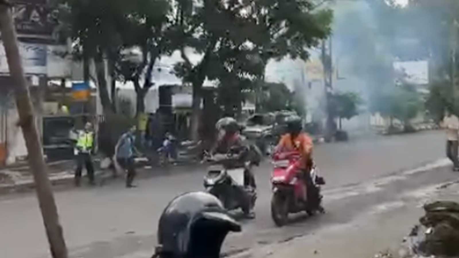Tangkapan layar video ketegangan setelah bom bunuh diri meledak di Markas Polsek Astananyar, Kota Bandung pada Rabu, 7 Desember 2022.*