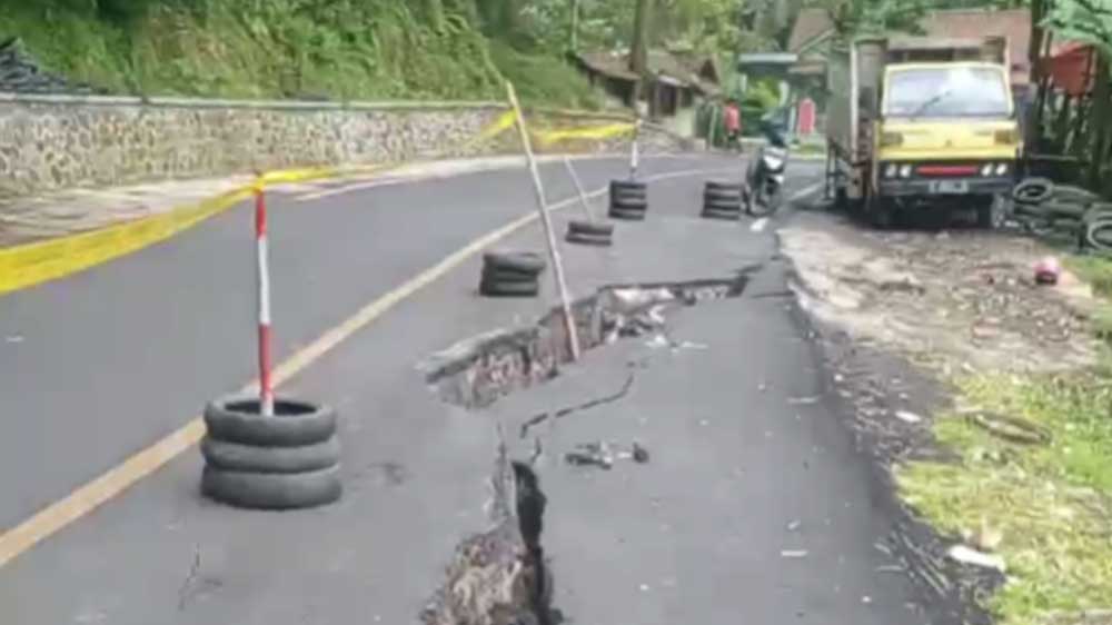 Sebab lokasi amblesnya jalan tersebut berada di tikungan. Lokasi yang ambles sudah dipadang tanda police line untuk mengantisipasi adanya pengendara yang terperosok.