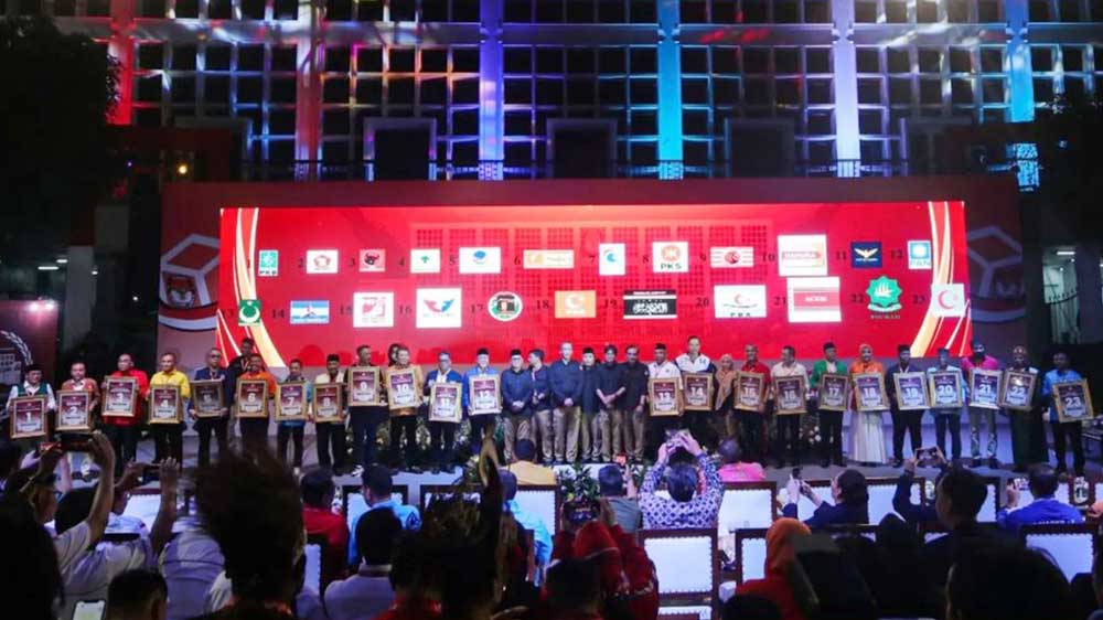 “Hasil penetapan dan pengundian, kami mengumumkan 17 parpol nasional peserta Pemilu 2024, termasuk 6 parpol lokal Aceh,” tutur Ketua KPU, Hasyim Asyari.