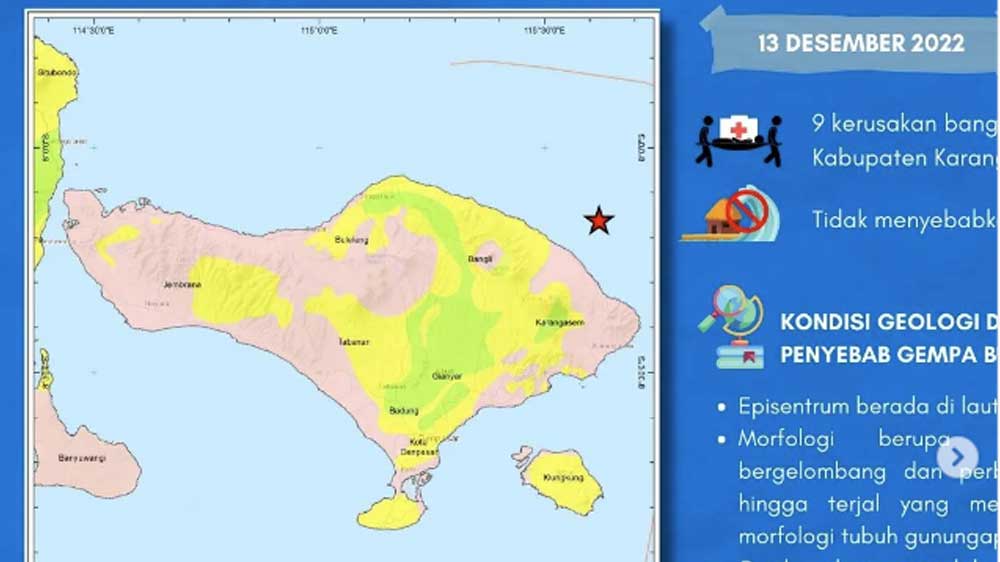 SUARA CIREBON – Pusat Vulkanologi dan Mitigasi Bencana Geologi (PVMBG) mengeluarkan keterangan resmi terkait gempa Bali yang berpusat di Karangasem, Kamis, 15 Desember 2022.