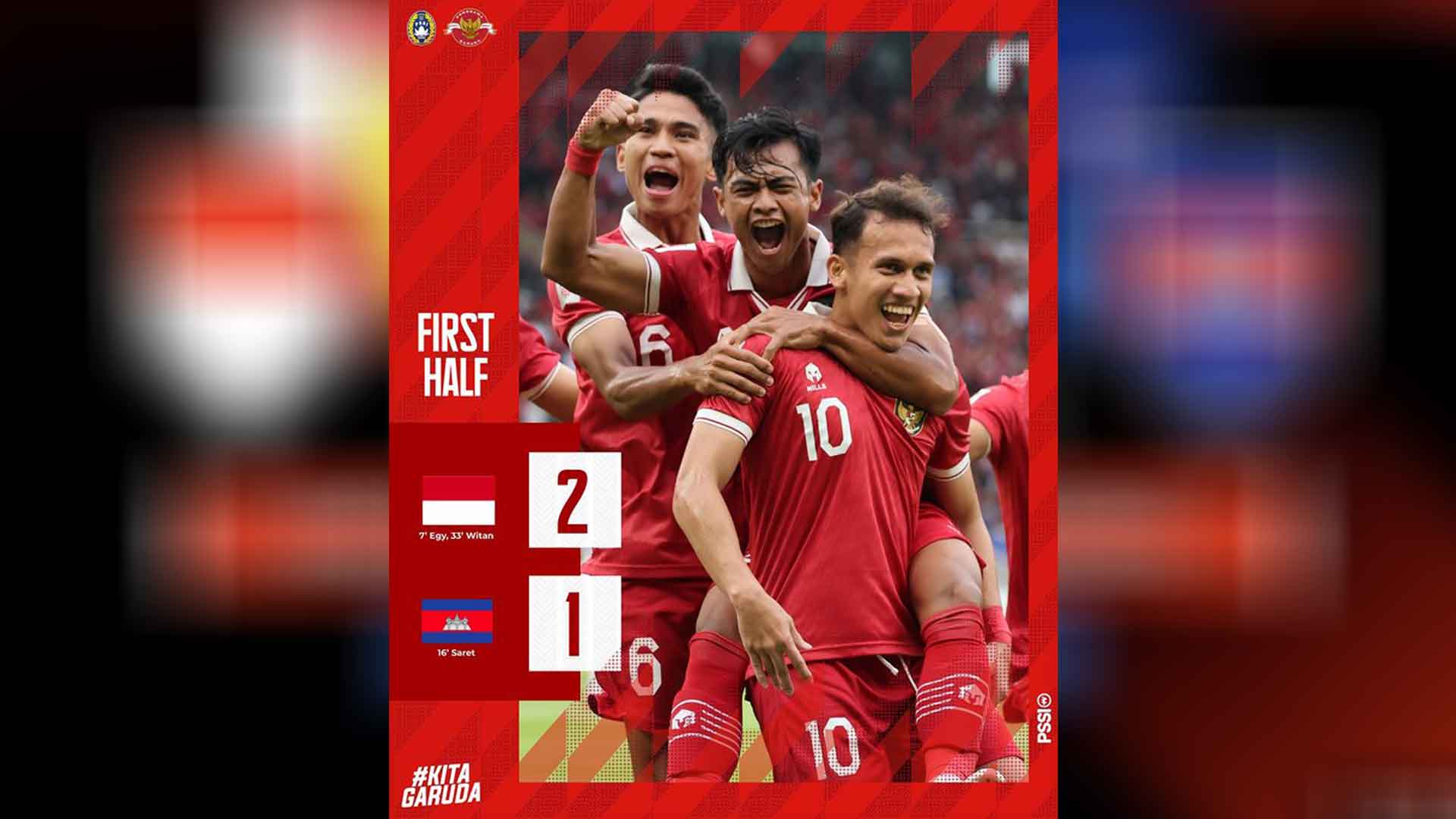 LIVE SKOR! Piala AFF 2022, Indonesia Unggul Sementara 2-1 Atas Kamboja, Babak Pertama Selesai
