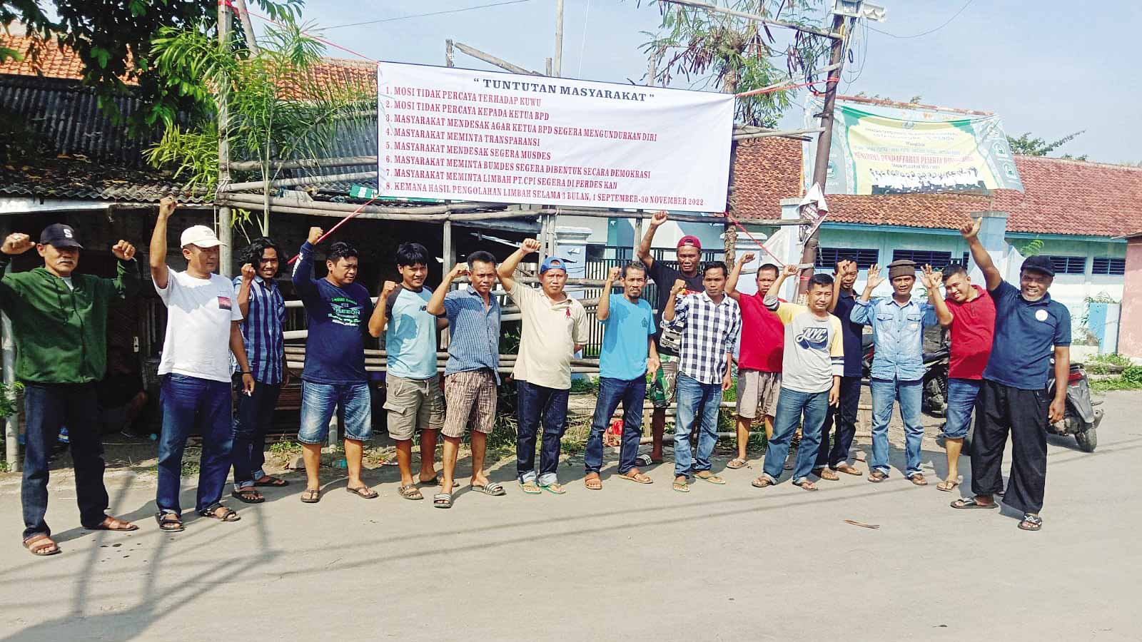 “Aksi yang kami lakukan sebagai bentuk aksi mosi tidak percaya dikarenakan tuntutan masyarakat hingga saat ini belum direalisasi pihak pemdes,” kata Tabroni.