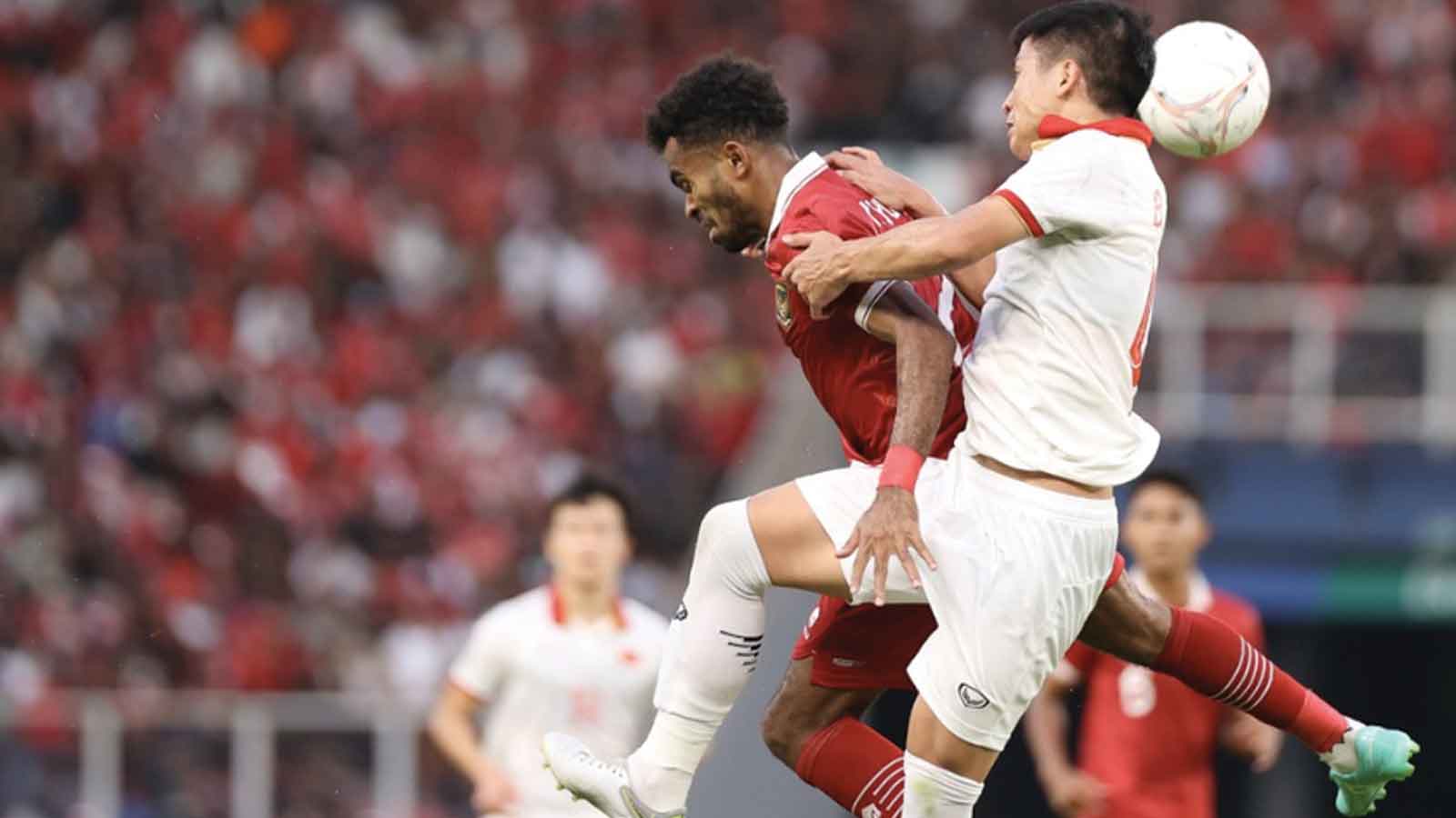 Para pemain Vietnam mampu mementahkan seranagn demi serangan yang dibangun para pemain dari Timnas Merah Putih.