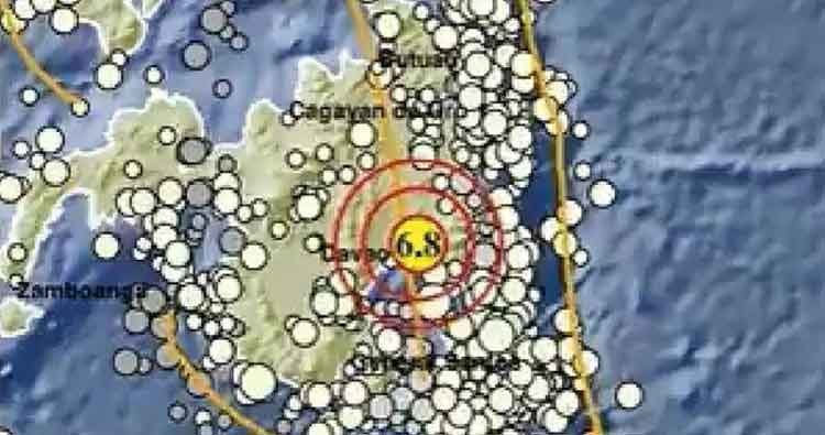 Gempa pertama di Melonguane, Sulut terjadi pukul 17.44 WIB. Berkekuatan Magnitudo 6,8 atau M 6,8.