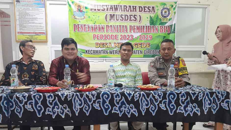 SUARA CIREBON – Pemerintah Desa (Pemdes) Megu Gede, Kecamatan Weru, Kabupaten Cirebon menggelar Musyawarah Desa (Musdes) pembentukan panitia pemilihan Badan Permusyawaratan Desa (BPD) periode 2023-2029.