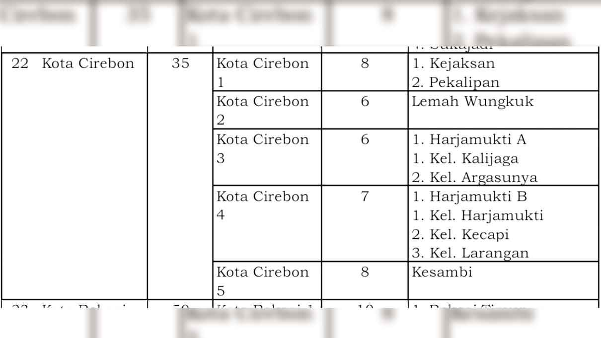 Di dalamnya, terdapat pemisahan beberapa kelurahan di Kecamatan Harjamukti menjadi dua dapil yang berbeda.