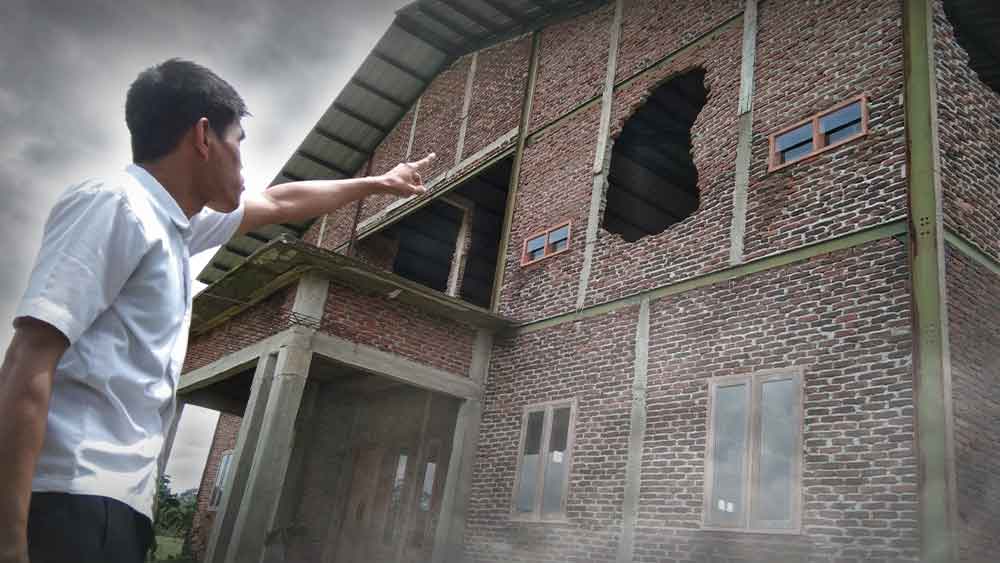 Sepengetahuan dirinya, angin kencang ini datang dari arah utara, kemudian menghantam tembok bagian depan atas dan samping GOR Sindangmekar.