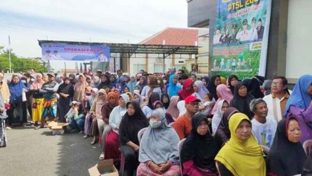 Warga yang rata-rata kaum ibu rela berdesak-desakan untuk bisa membeli beras yang dijual di bawah harga pasar.