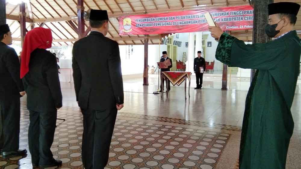 Bupati Imron, melantik dan mengambil sumpah 12 pejabat eselon II di lingkup Pemkab Cirebon hasil open bidding dan ujikom yang telah dilaksanakan sebelumnya.